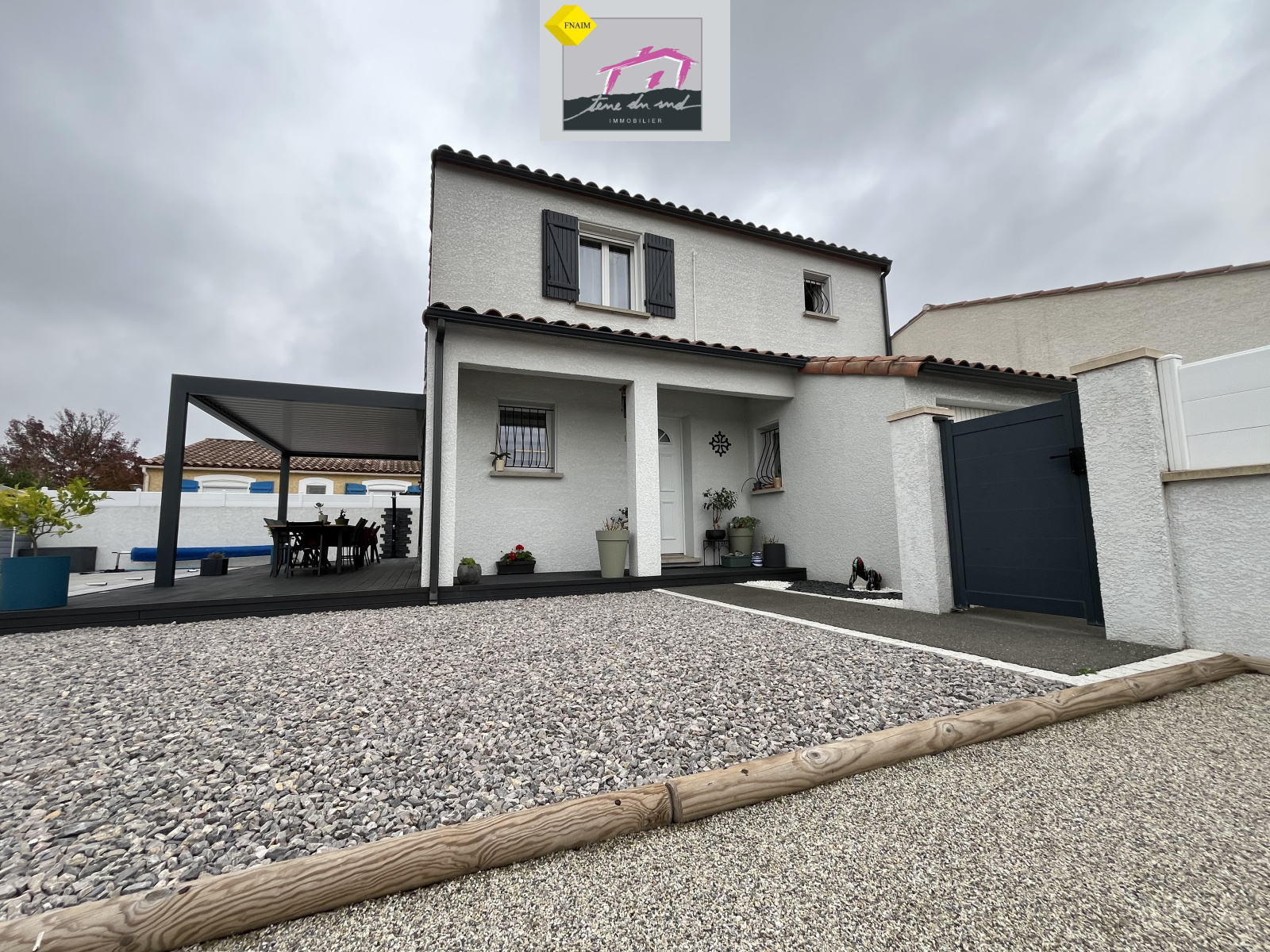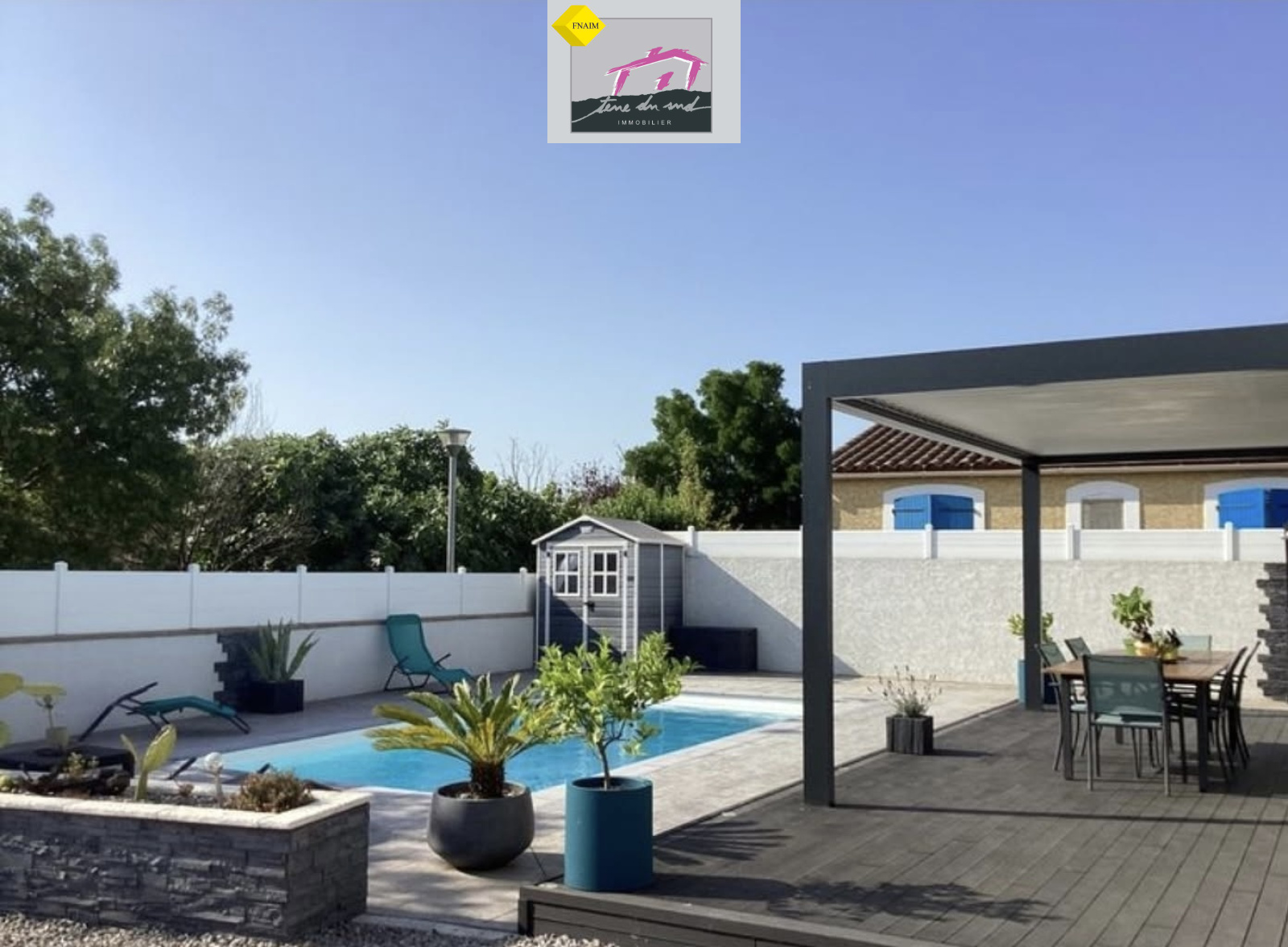 Un accès direct à une agréable terrasse avec pergola bioclimatique et coin barbecue, parfaite pour recevoir famille et amis.