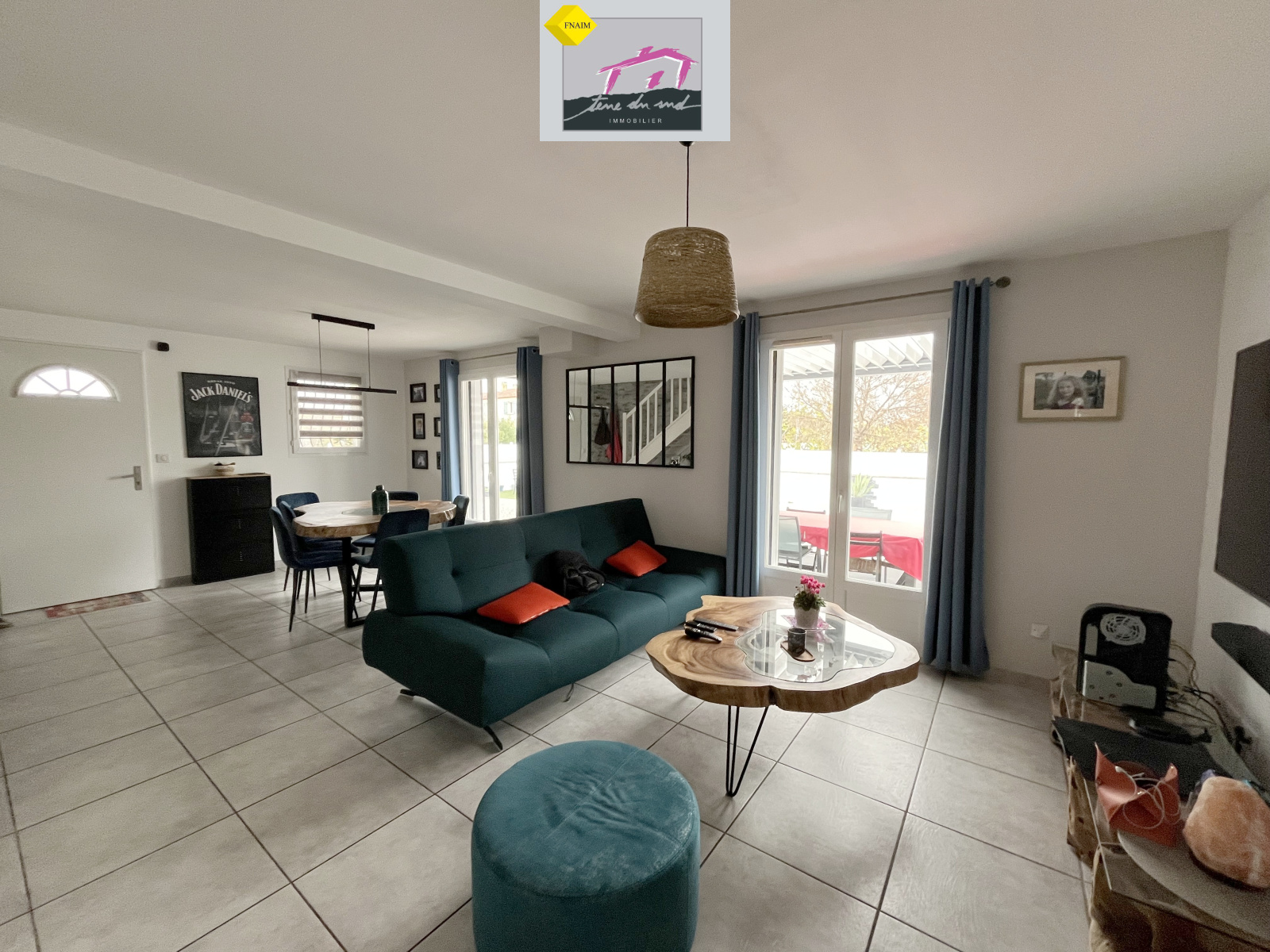 Une spacieuse pièce de vie baignée de lumière.