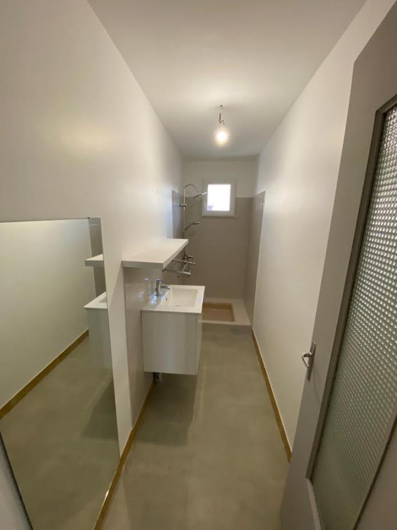 Maison 3 : T3 de 66 m² avec 2 chambres, cuisine, pièce à vivre, salle d'eau, WC séparé, balcon. Louée 411 €/mois. Grand garage de 46 m² avec accès à un studio à rénover et un appartement T3 de 65 m² libre. Taxe foncière : 656 €/an.