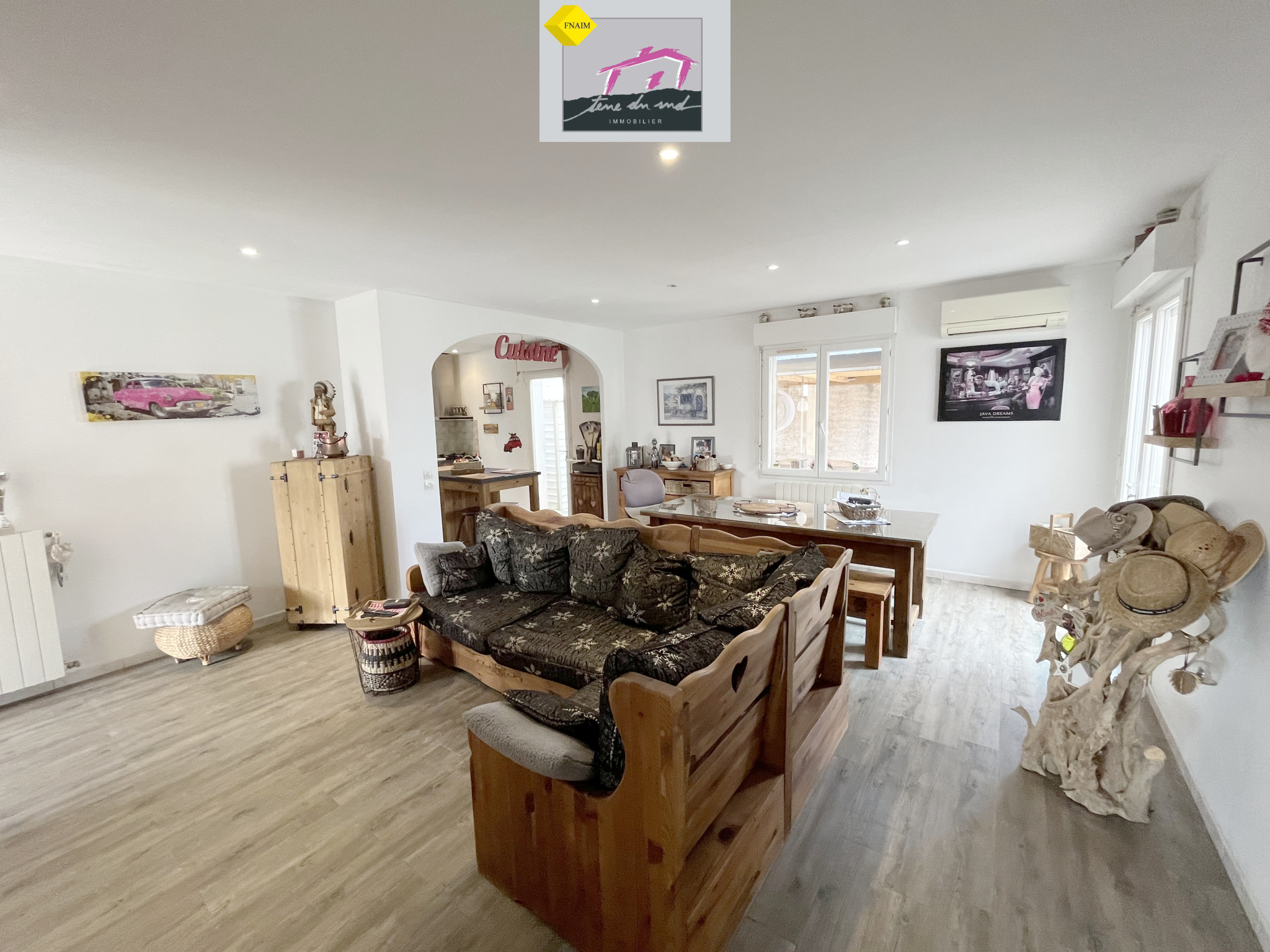 Moux (11700)Située dans un environnement calme au cœur d’un village,l'agence Terre du Sud vous propose cette maison de plain-pied de 100 m² habitables.