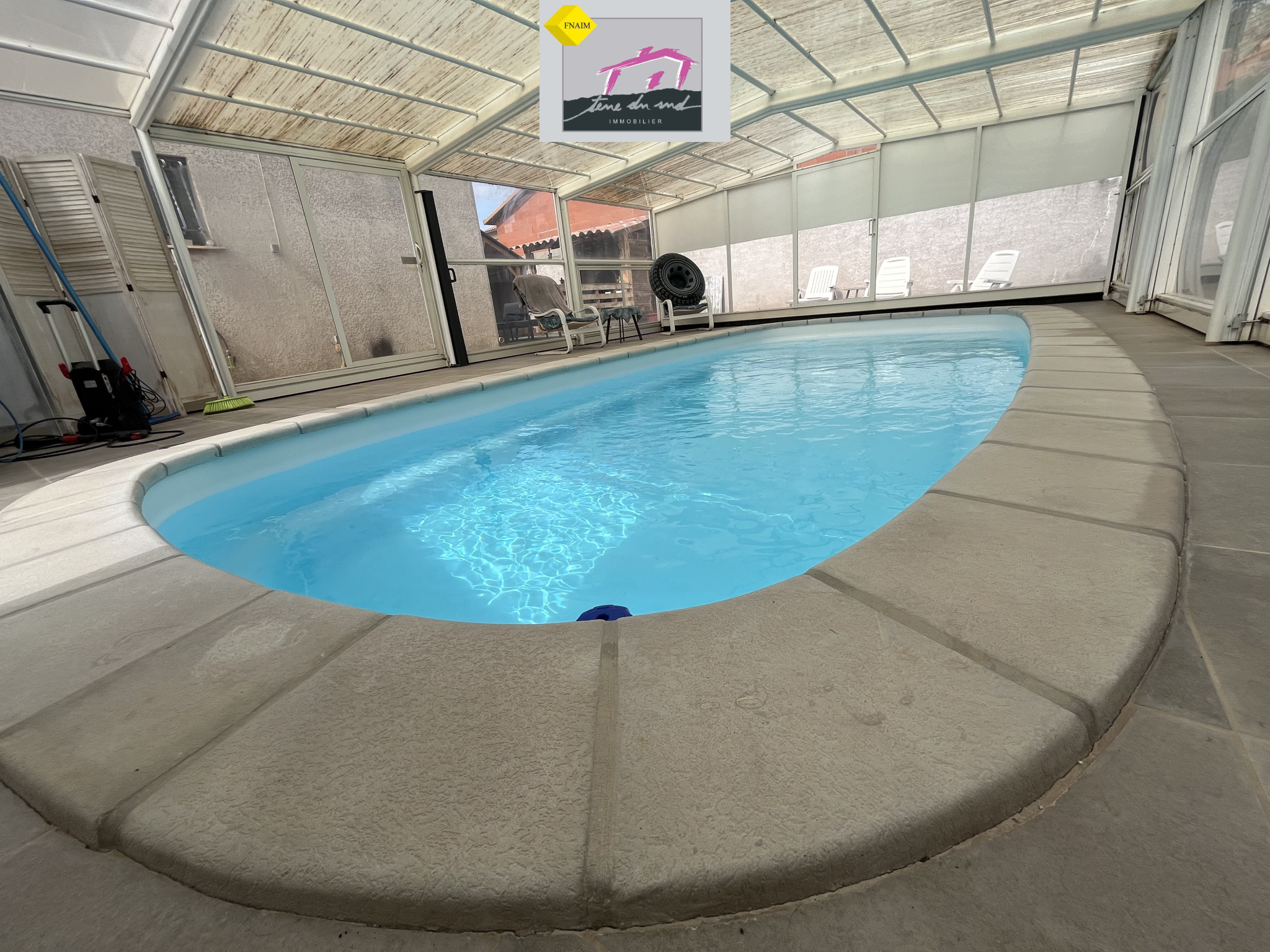 Accès direct à une terrasse et à une piscine couverte, équipée d'une pompe à chaleur, idéale pour profiter des beaux jours en toute saison.