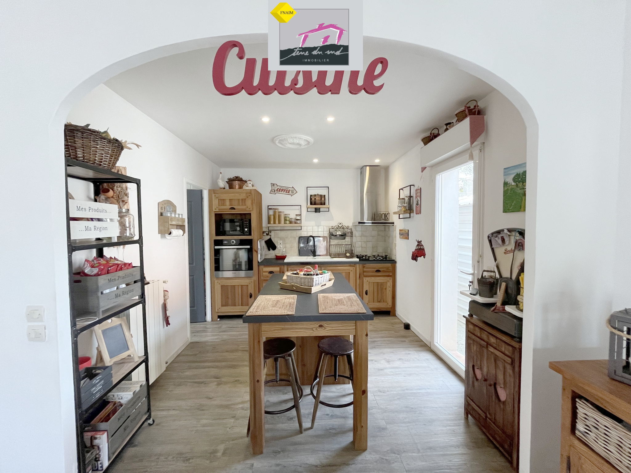 Elle se compose de 3 chambres lumineuse une pièce de vie spacieuse et conviviale,ouverte sur une cuisine équipée, ainsi qu'une grande arrière-cuisine.